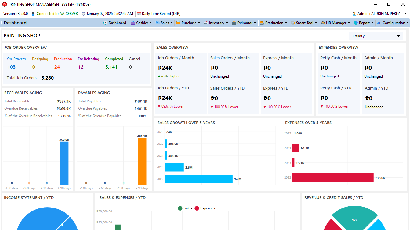Run your printing shop in one smart system. Job Orders, Inventory, Billing, Payroll, and Reports — all in one dashboard. Request a demo Job Order Management Create orders once. Track everything automatically. From request to release, every job stays visible and organized.